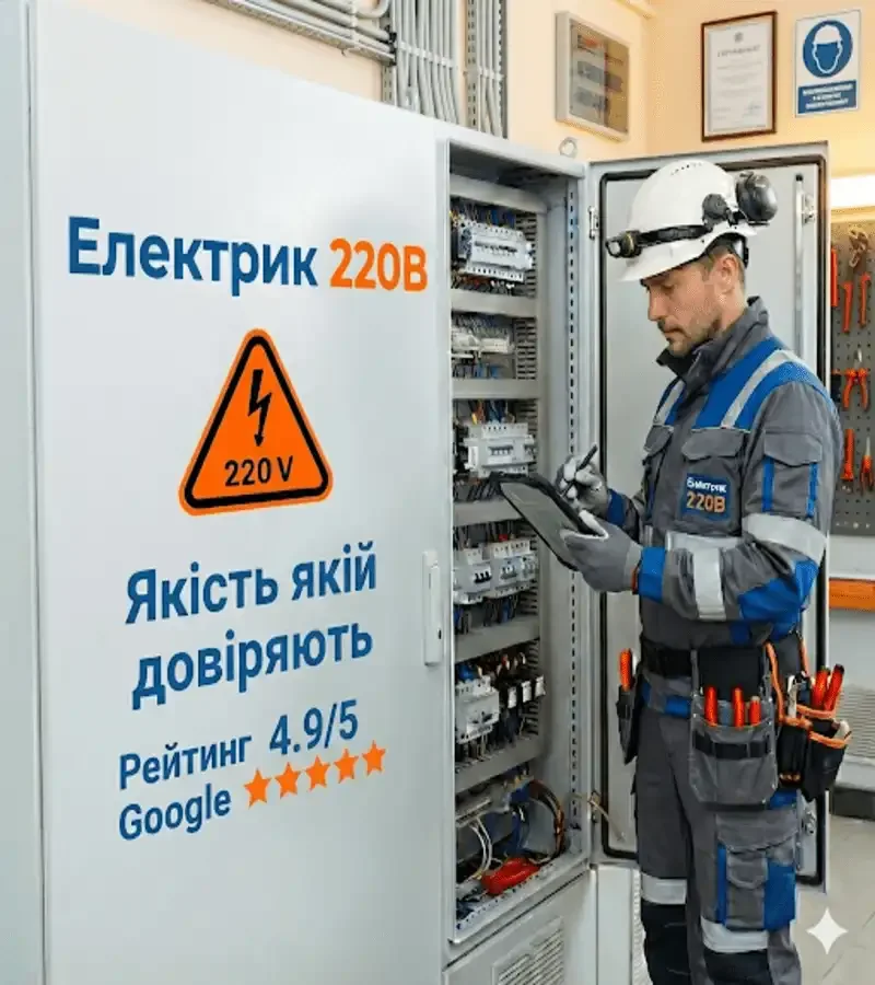 Професійний електрик у Кам'янці-Подільському. Електромонтажні роботи будь-якої складності. Аварійний виклик 24/7. Гарантія до 3 років. Приїзд за 30 хвилин. Телефон: +380677523103
